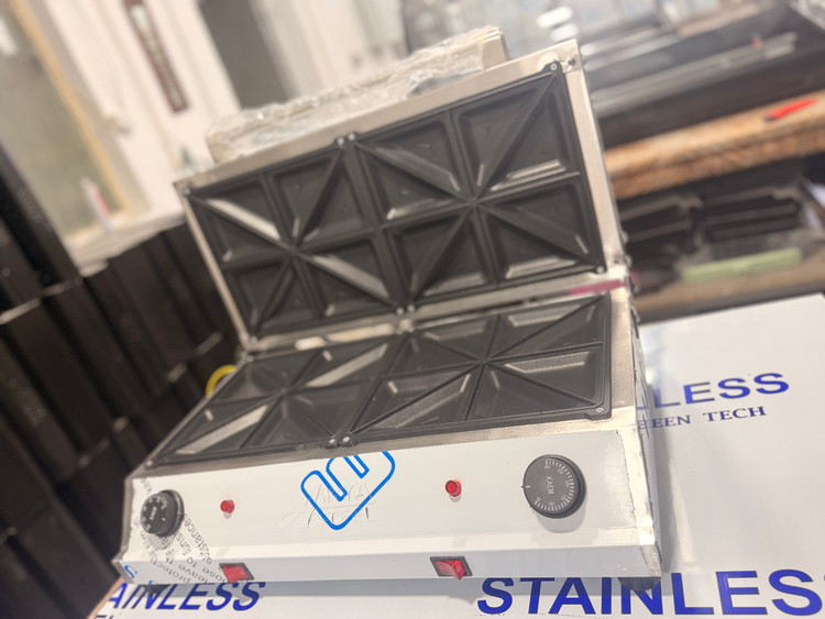 اسنک ساز مثلثی همراه با صفحه تفلون و دایکس و صفحه ها با سایز بزرگ و دارای ۶ ماه گارانتی